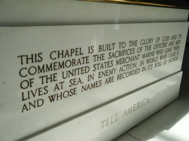 The Mariner’s Chapel was built for the Glory of God and in memoriam for the men and officers who lost their lives at sea. Over 7000 human beings and 142 midshipmen who died are remembered in this House of God. This is the place where I received my vocation and calling to navigate the ship of my soul and be a light to others. The chapel is a navigational light that is used to navigate the Long Island Sound. It also helps us to find the safe harbor of our souls.
